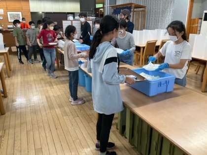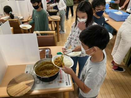 夕食は、みんなで協力して作ったカレーライスです。味わって食べようね。