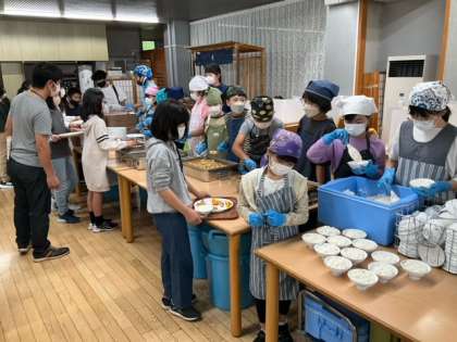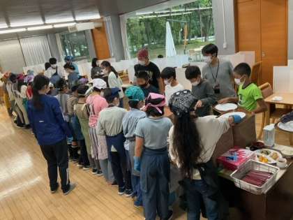 川場移動教室では、朝食の配膳を自分たちで行います。お腹がぺこぺこで、早く食べたいですね。