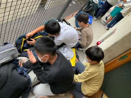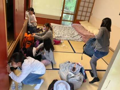 朝食が終わり、出発準備進行中です。生活班で協力しながら、テキパキと動いています。