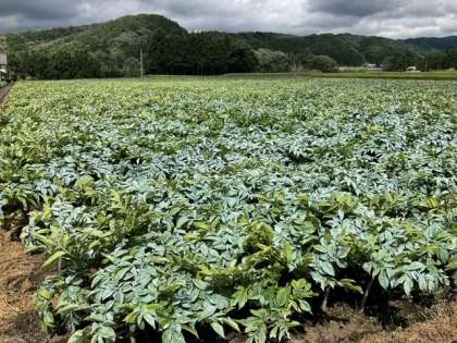 子どもたちの後ろに広がっているのは、広大なこんにゃく畑です。