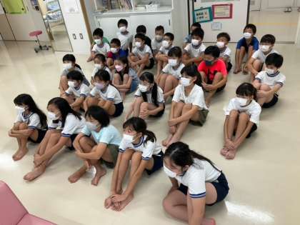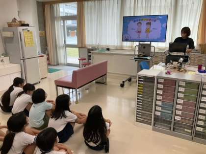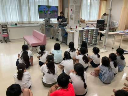 夏休み明けの身体計測に合わせて、養護の先生によるミニ保健指導を行っています。
