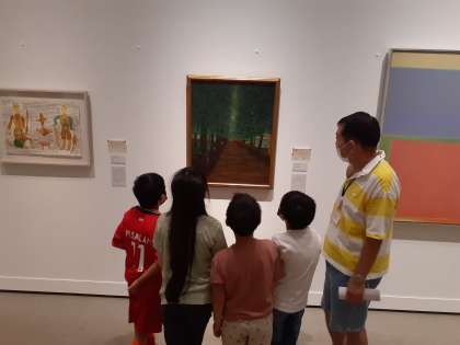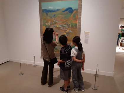 世田谷美術館に美術鑑賞教室に来ています。ボランティアの方々の説明を興味深く聞き、作品をじっくり見る姿が見られました。