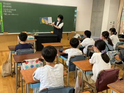 こちらは、6年生の読み聞かせの様子です。各学年に合った本を選んでくださっていて、どの学年にとっても楽しい時間になっています。