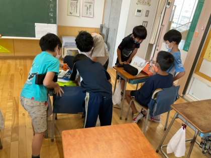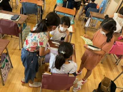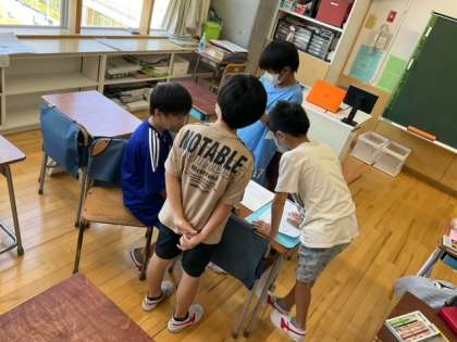 学級活動の時間です。係の活動に一生懸命取り組んでいます。やる気が伝わってきますね。