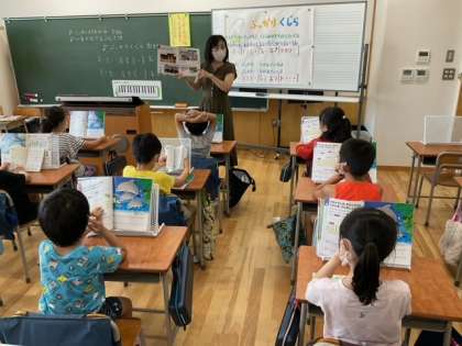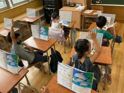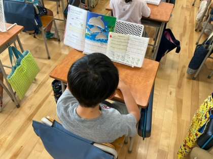 音楽の時間です。「いるかは ざんぶらこ」三拍子を感じながら、歌ったりリズムを打ったりしています。