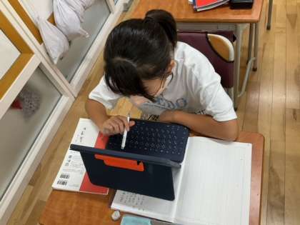 国語の時間です。詩を読んで感想をノートにまとめました。各自の感想をロイロノートで共有し、お互いに鑑賞し合っています。