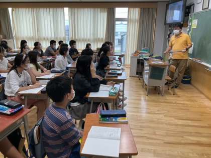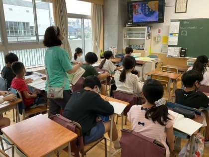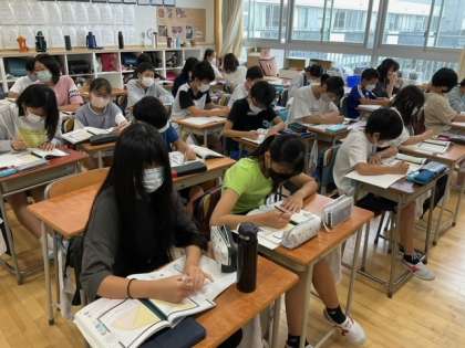 算数の時間です。円の4分の1の部分の面積を求めています。方眼を数えたり、正八角形を書いたりして求めています。