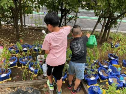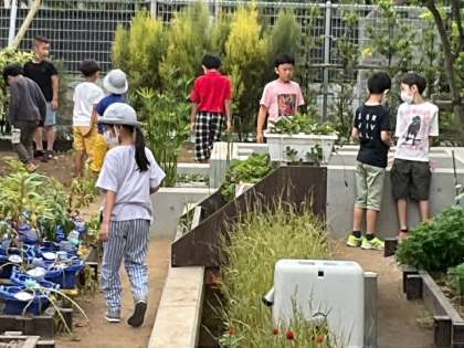 涼しくて過ごしやすい気候です。子どもたちは、校庭で走り回ったり、植物に水をあげたり、ビオトープの観察をしたりと楽しそうです。