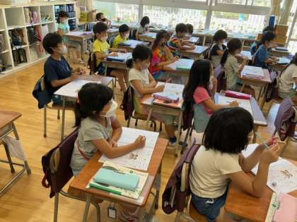 国語の時間です。「三」の学習から、どんどん学びが広がっていきます。