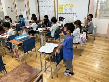生活科の時間です。代田図書館について調べたことを、新聞にまとめています。たくさんのことに気付きましたね。