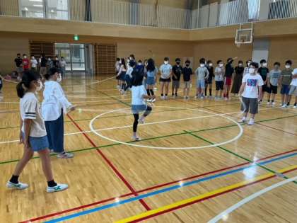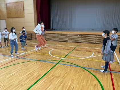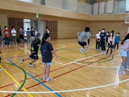 今日のわくわくタイムでは、クラス全員の長なわとびに挑戦しています。応援の声が、たくさん聞こえてきます。
