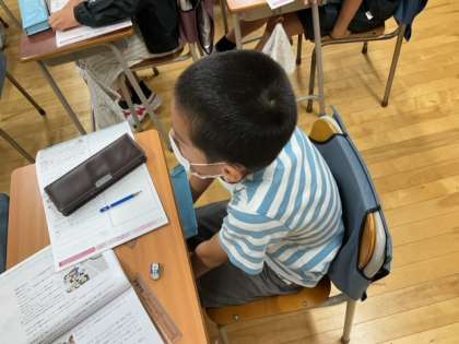 道徳の時間です。「ほんとうに上手な乗り方とは」学習を通して気づいたことを、どのように生活に生かすか考えています。