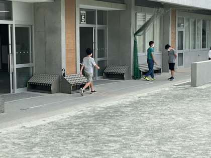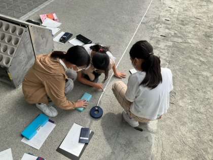算数の時間です。「平均」の学習をしています。10歩の距離をはかって、1歩の長さを求めています。