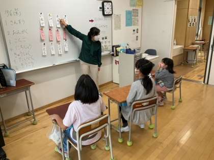グループ学習の時間です。国語では、言葉づくりに挑戦しています。たくさん作ってくださいね。