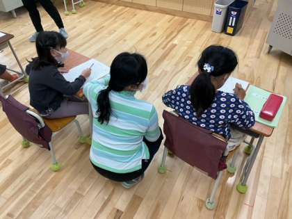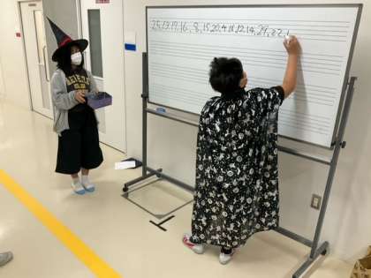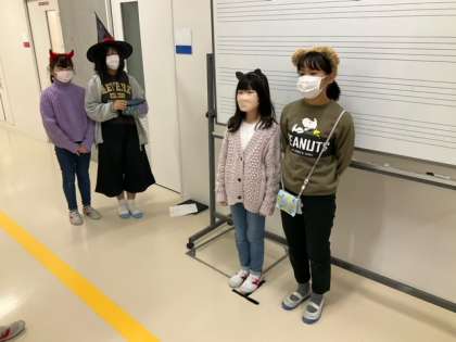 今朝の児童集会は、ハロウィンビンゴです。「やったー」「そろった!」どの教室も盛り上がっていました。