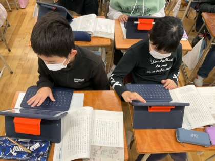 国語の時間です。「鳥獣戯画を読む」高畑勲さんの作品です。初発の感想に取り組んでいます。