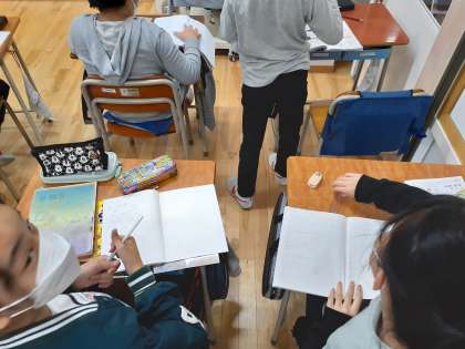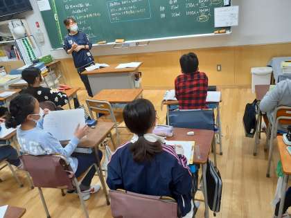 算数の時間です。単位量あたりの大きさの学習をしています。子供たちにとって難しい単元の一つです。復習から一生懸命取り組んでいました。