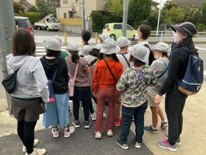 くるみ学級のみなさんと校外学習に出かけています。井の頭通りまできました。