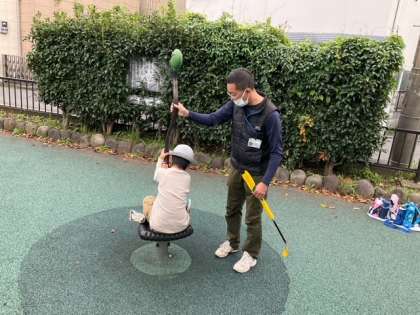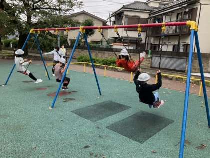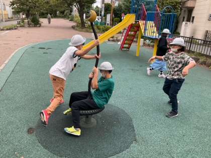 公園には、いろいろな遊具があります。みんな仲良く、楽しく遊んでいます。