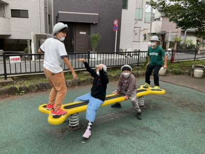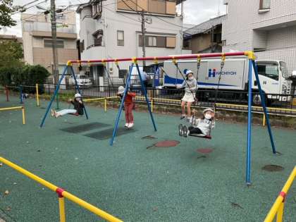 学校にはない遊具があって、思い切り遊べますね。ブランコが大人気です。