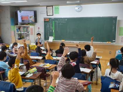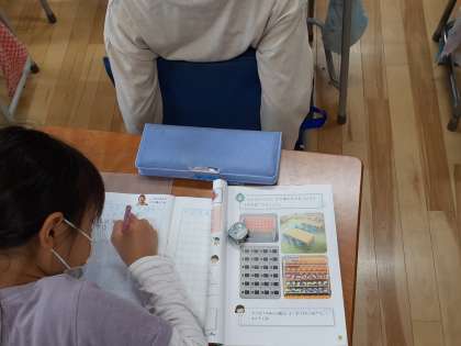 算数の時間です。身の回りにあるかけ算の式で表せるもの見つけました。見方を変えることでいろいろな式を作りました。