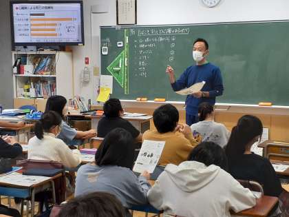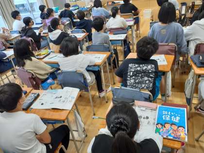 体育の保健の時間です。連合運動会が延期になってもしっかり学習しています。たばこの害について知り、害の大きさに驚いていました。