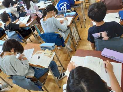 国語の時間です。ごんぎつねを学習しています。覚えている人も多いのではないでしょうか。たくさんの意見が出て、みんなでごんの気持ちを考えていました。