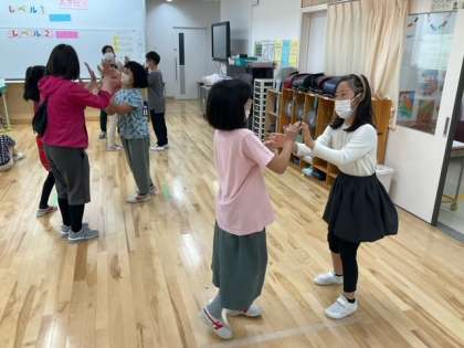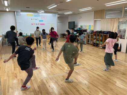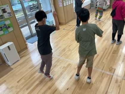生活単元の時間です。動きが大きくなってきましたね。友達と一緒に楽しんで踊っています。