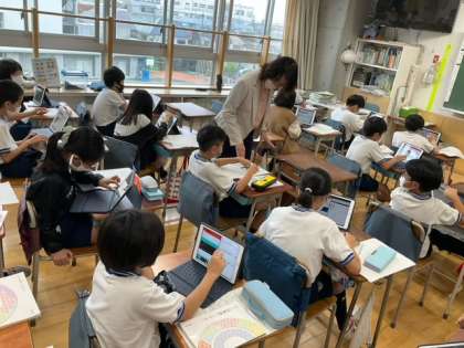 日本語の時間です。日本の「衣・食・住」について、どのような工夫があるのかを、テーマを設定して調べています。