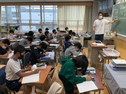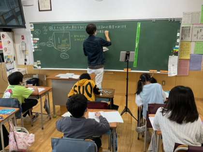 算数の時間です。大きな面積の単位について学習しています。実感を伴って学びを深められるように工夫しています。