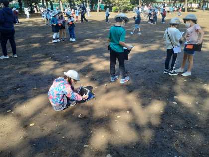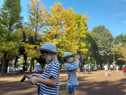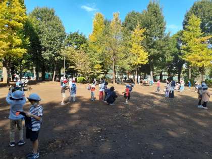 羽根木公園に来ました。青空で気候もよくとても気持ちがよいです。みんなで秋を探しています。