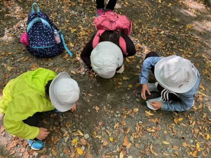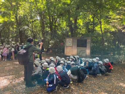 等々力渓谷公園に着きました。楽しいハイキングですね。
