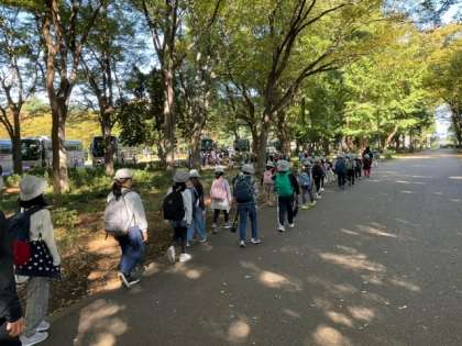 砧公園を出発しました。たくさん学んで、いっぱい食べて遊んで、充実した社会科見学でしたね。