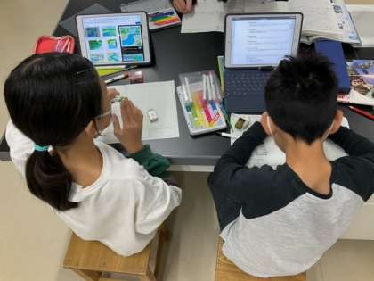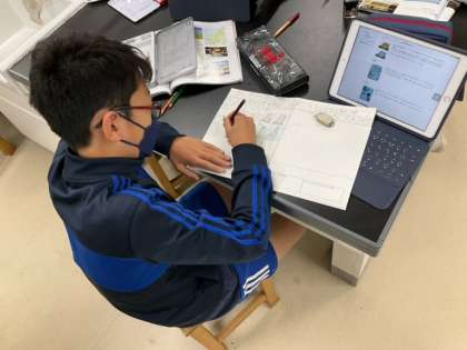 理科の時間です。「川のはたらき」について、ポスター形式でまとめています。