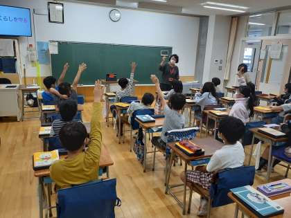 社会の時間です。火災が起きている写真や資料から、この単元で学習していく学習問題をつくりました。