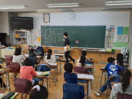 算数の時間です。7の段のかけ算のしくみについて考えました。