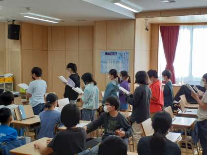 音楽の時間です。「すてきな友達」を心を込めて歌いました。友達の歌い方のよいところもたくさん見つけられました。