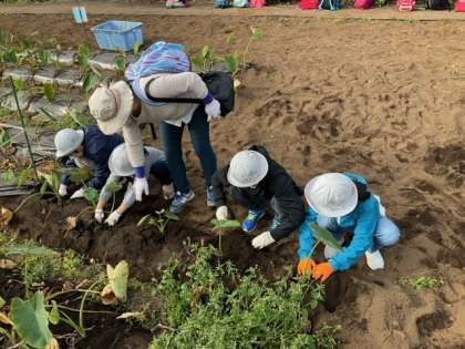 さといもほりが始まりました。たくさん掘ってくださいね。