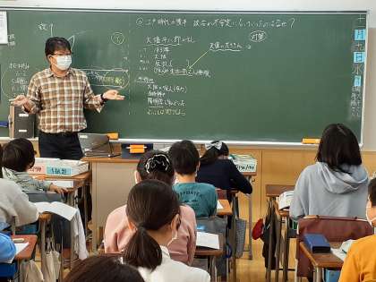 社会の時間です。江戸時代の後半に政治が不安定になっていったことを資料から考えました。