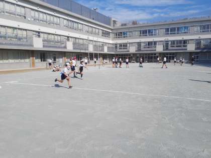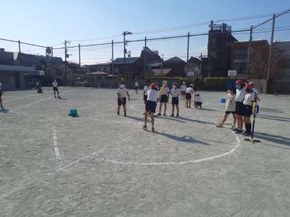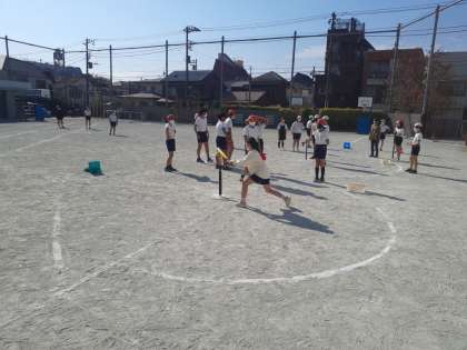 体育の時間です。ルールにも慣れ、自信をもって打ったり走ったりできました。