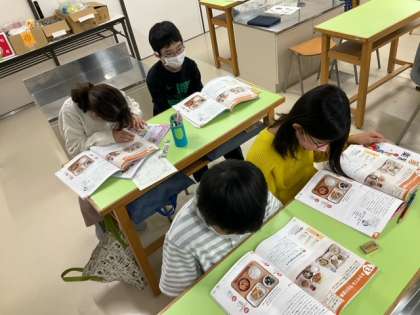 家庭科の時間です。「まかせてね 今日の食事」主食、主菜、副菜を組み合わせて、栄養バランスの良い食事を考えています。
