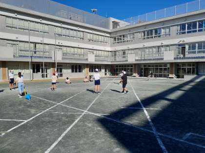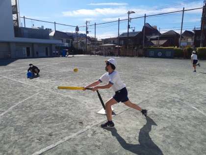体育の時間です。ティーボールにも慣れてきて、打球も鋭くなってきました。天気もよくて気持ちよさそうです。