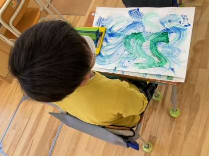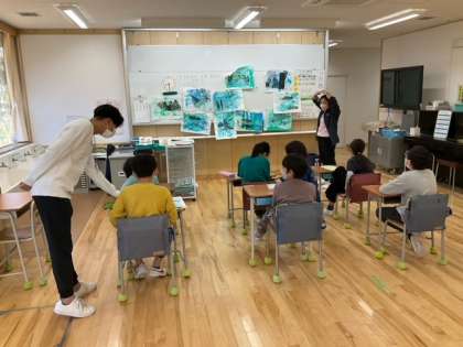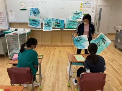 図工の時間です。版画の仕上げに入っています。どんな作品にしようかな?