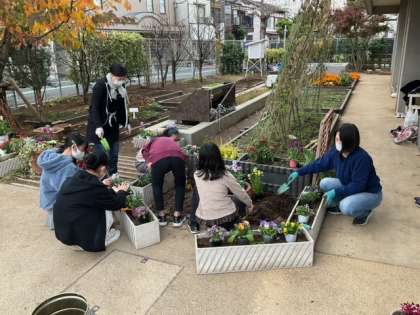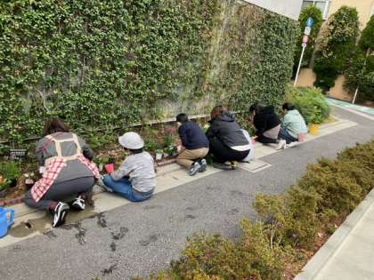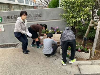 飼育栽培委員会の活動の様子です。地域ボランティアの方に教えていただきながら、花を植えました。正門や東門にも植えましたので、来校の際には、ぜひご覧ください。