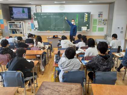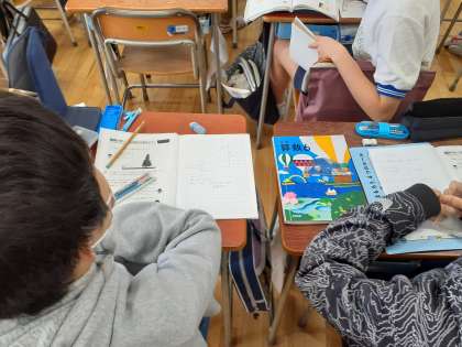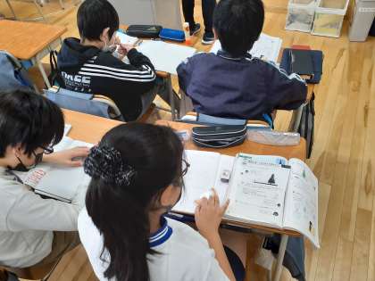 算数の時間です。縮図を利用して、測ることが難しい長さを求めることができました。