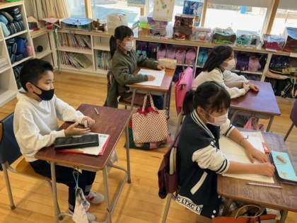 国語の時間です。「すがたをかえる大豆」例の書き方を学習しています。自分なりに工夫して、説明文を書いてみましょう。
