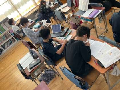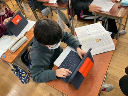国語の時間です。「伝統工芸のよさを伝えよう」組み立てと資料の使い方を考えて、自分で選んだ伝統工芸を説明する文章を書いていきます。