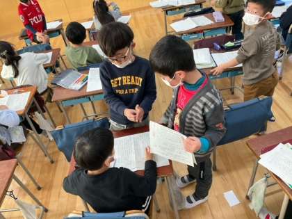 国語の時間です。「おもちゃの作り方をせつめいしよう」相手に伝わるように、順序を工夫して詳しく説明します。