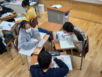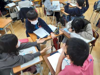 国語の時間です。話し合いの題材を考えました。グループの話し合いがよくできています。