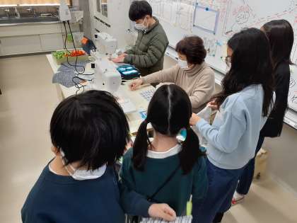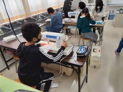家庭科の時間です。ミシンを使って雑巾を作っています。少しずつ慣れてきたようです。